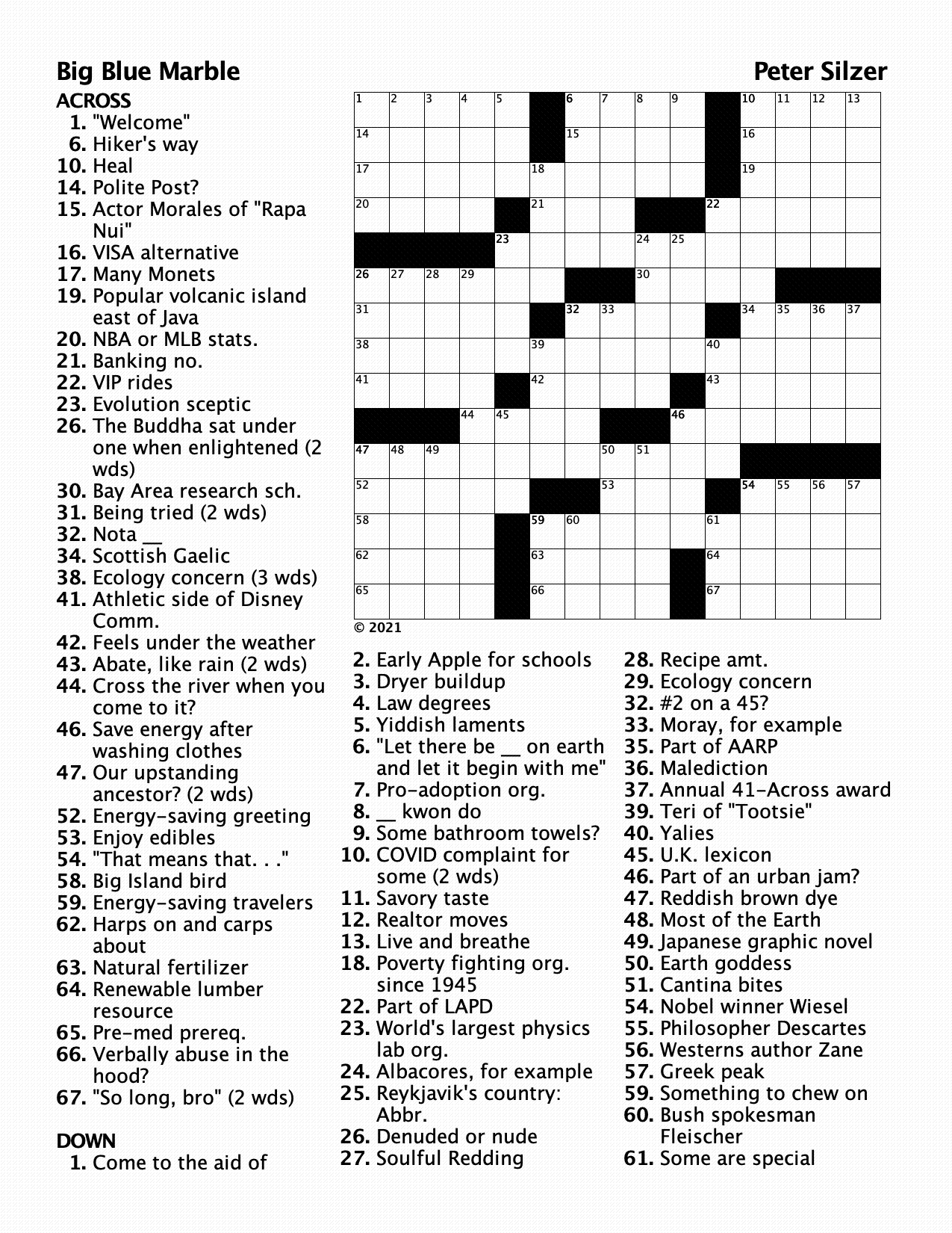Life on earth is a daily miracle. From sunrise to sunset, from seed to fruit, from conception to old age, we live by a series of miracles every day. A crossword tribute to the world around us.