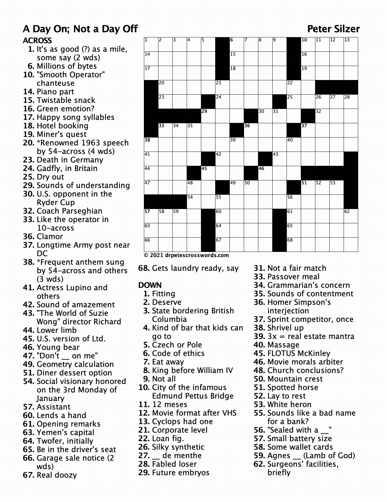 On Monday, January 18 2021 the US will honor the memory of Reverend Martin Luther King, Jr. Here is my tribute in crossword form.