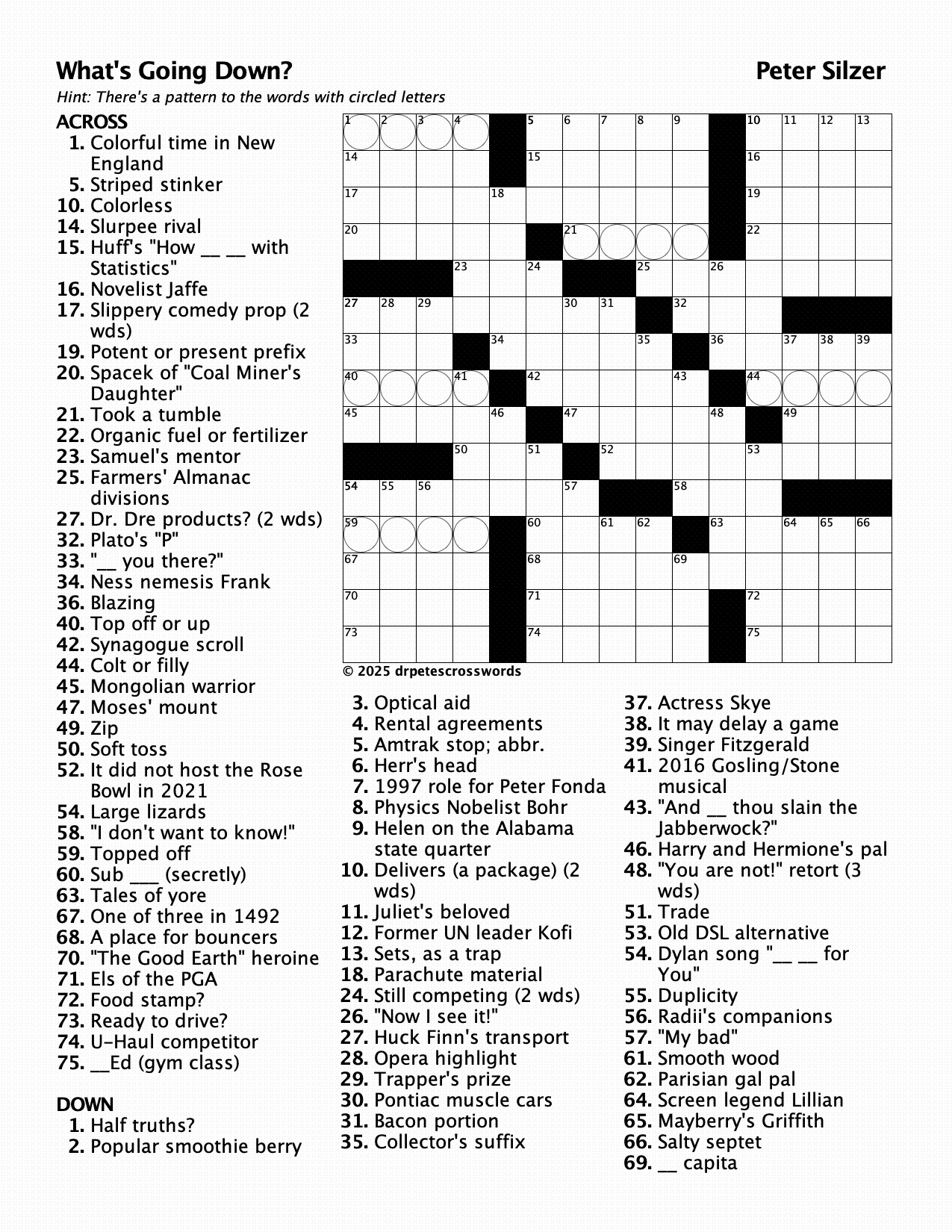 Here's a crossword that has what is called a "wordtree" structure. I have circled four spaces in five entries. When you solve the puzzle (correctly) you will reveal a type of pattern based on the vowel sounds in the 4-letter words.