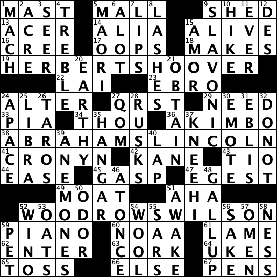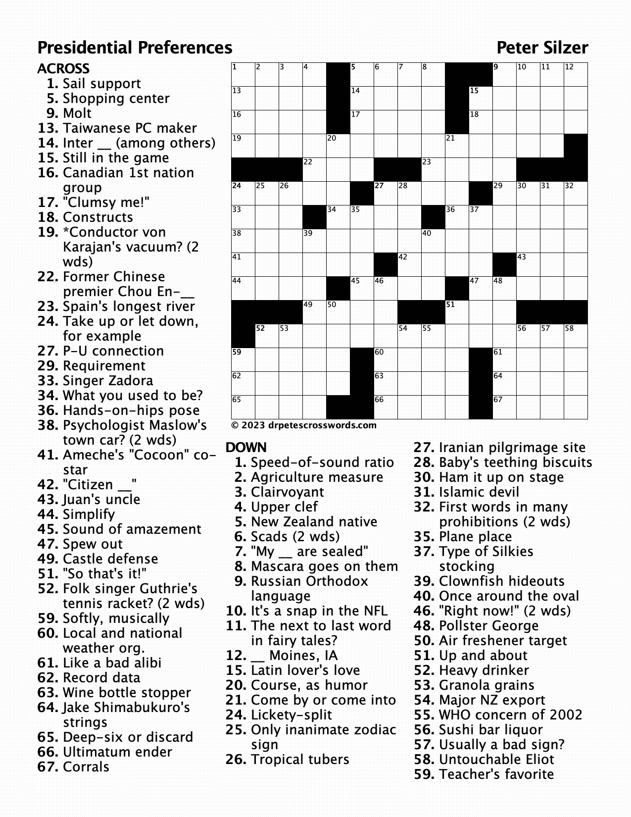 Click to print the puzzle or the solution. You can also solve the puzzle online at http://crossword.info/DrPete/PresidentsDay2023