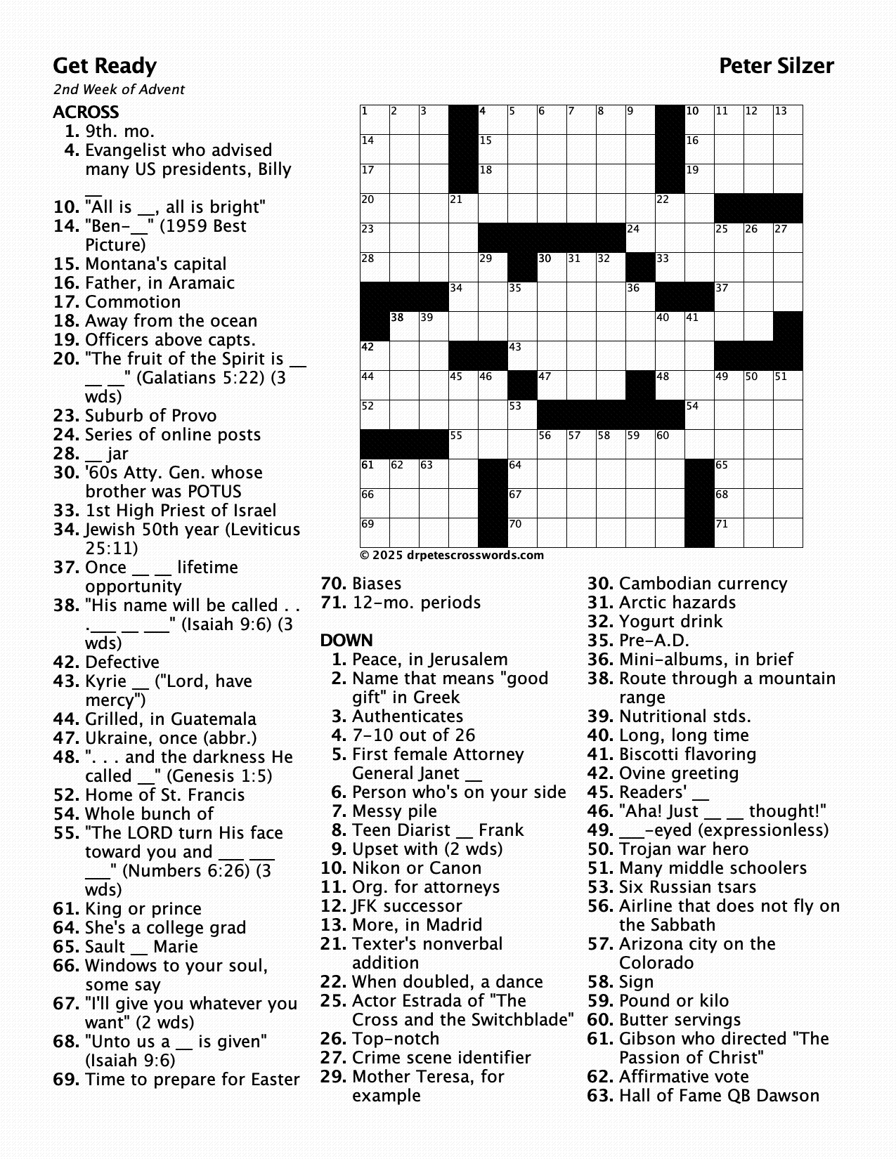 Christians around the world celebrate a special time of pre-Christmas preparation. I have 4 crosswords prepared for you and your family to think about this time of waiting and anticipation. I hope you
